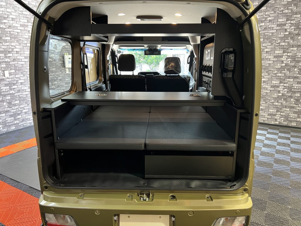 バッテリー容量は最大460Aまで対応 脱着式テーブル標準装備 - 【右】低床型ベッドキット 寛 -くつろぎ-