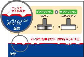 鏡面状態にする研磨。塗装の厚みは2ミクロン程度減る。
