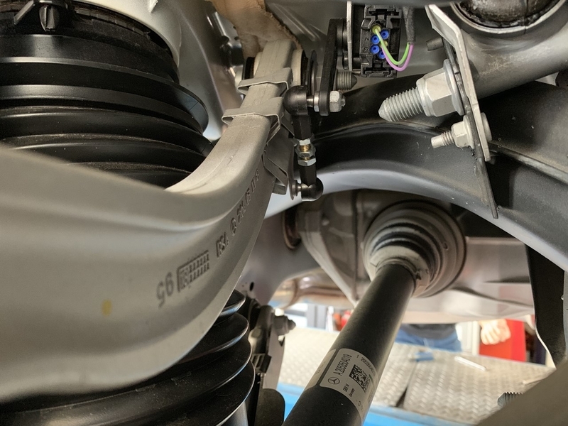 今回はCクラス クーペ W205をローダウンするためロワリングキットの取り付けをさせて頂きました♪ロワリングキットとは足回りに付いているセンサー部分のロッドを長さを変えてやる事でローダウンが可能になります。